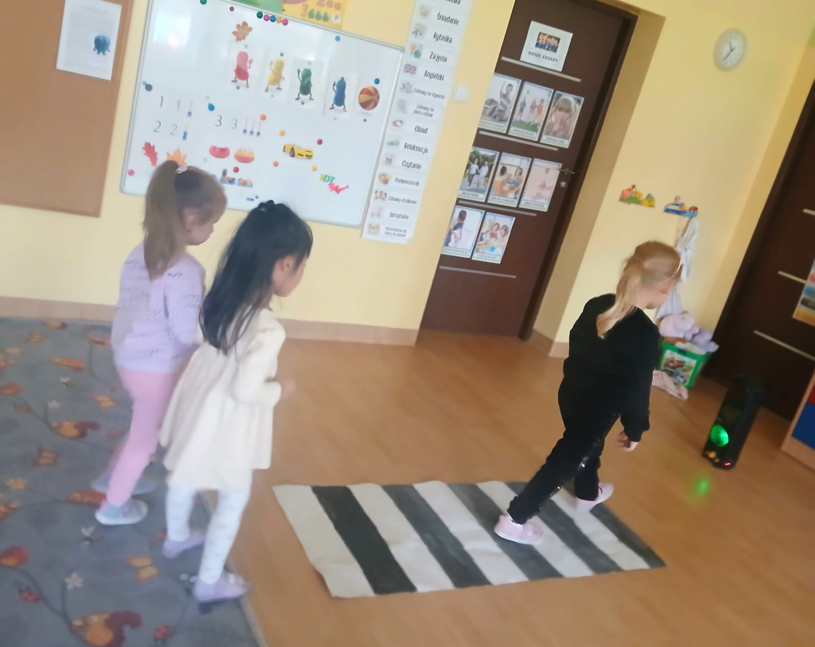 Dzieci z grupy „Jabłuszka " poznały podstawowe zasady ruchu drogowego . Podczas zajęć rozmawiały o tym, jak bezpiecznie poruszać się po chodniku i jak prawidłowo przechodzić przez jezdnię na pasach.