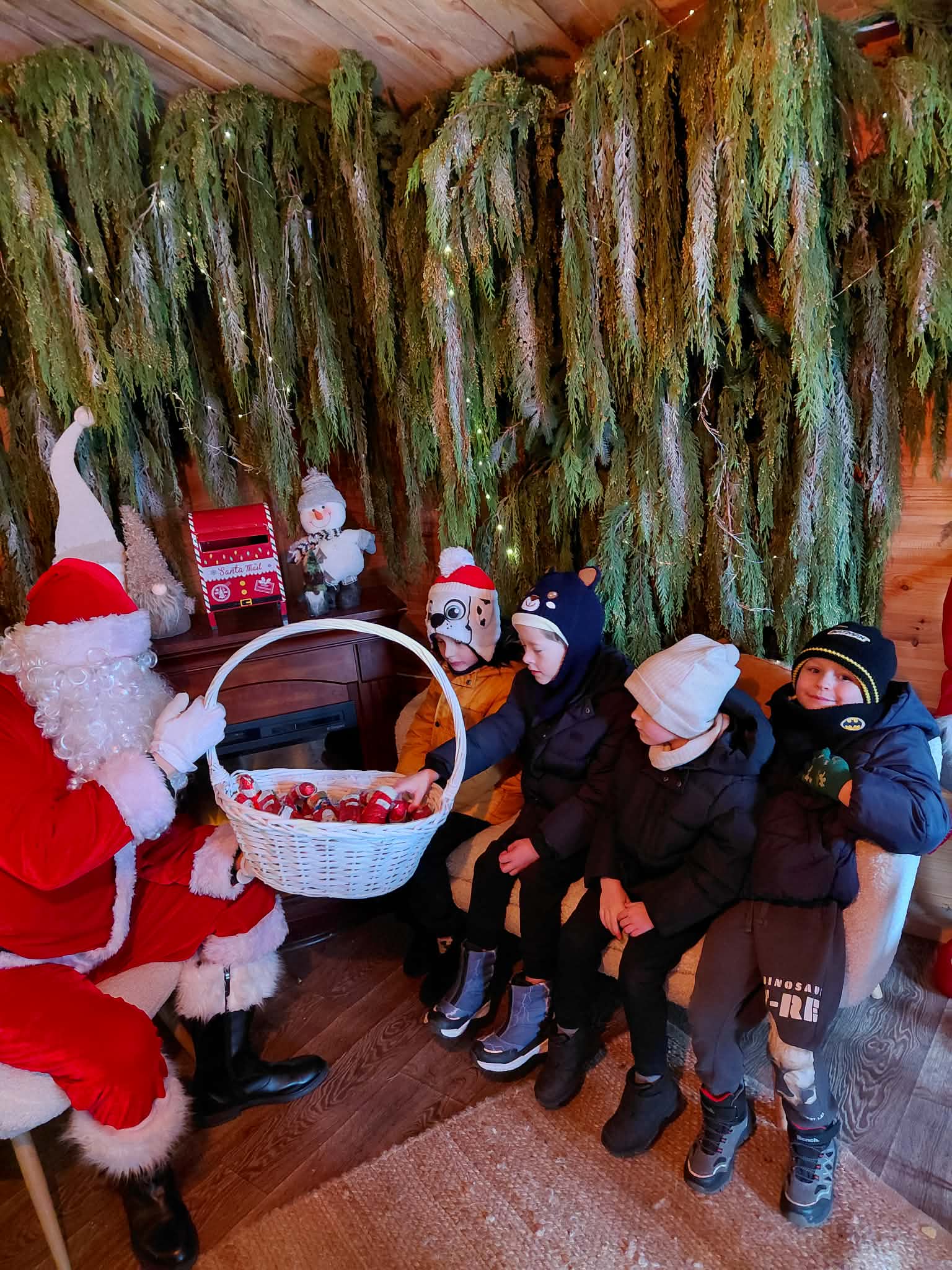 Dzieci z grupy Żabki 16.XII odwiedziły Chatkę Mikołaja na skierniewickim Rynku. Każde z dzieci mogło porozmawiać z Mikołajem o swoich świątecznych marzeniach oraz posłuchać rad mądrego "świętego" jak być dobrym i uprzejmym dla innych. Okazało się, ze Mikołaj potrafi powiedzieć "Wesołych Świąt" w różnych językach, nie tylko po skandynawsku, angielsku czy polsku ale nawet po japońsku. Dzieci kolorowały drewniane ozdoby i zrobiły zajęcia w saniach Mikołaja. Żabki życzą Wesołych Świąt wszystkim elfom, Mikołajowi i mieszkańcom Skierniewic.