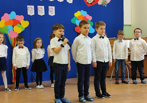 Zajączki dla swoich gości - Babć i Dziadków przygotowały nie tylko piosenki i wierszyki, ale też krótką historię ich znajomości od dzieciństwa aż po czas, gdy mogą opiekować się swymi wnukami. Jak ten czas leci ...