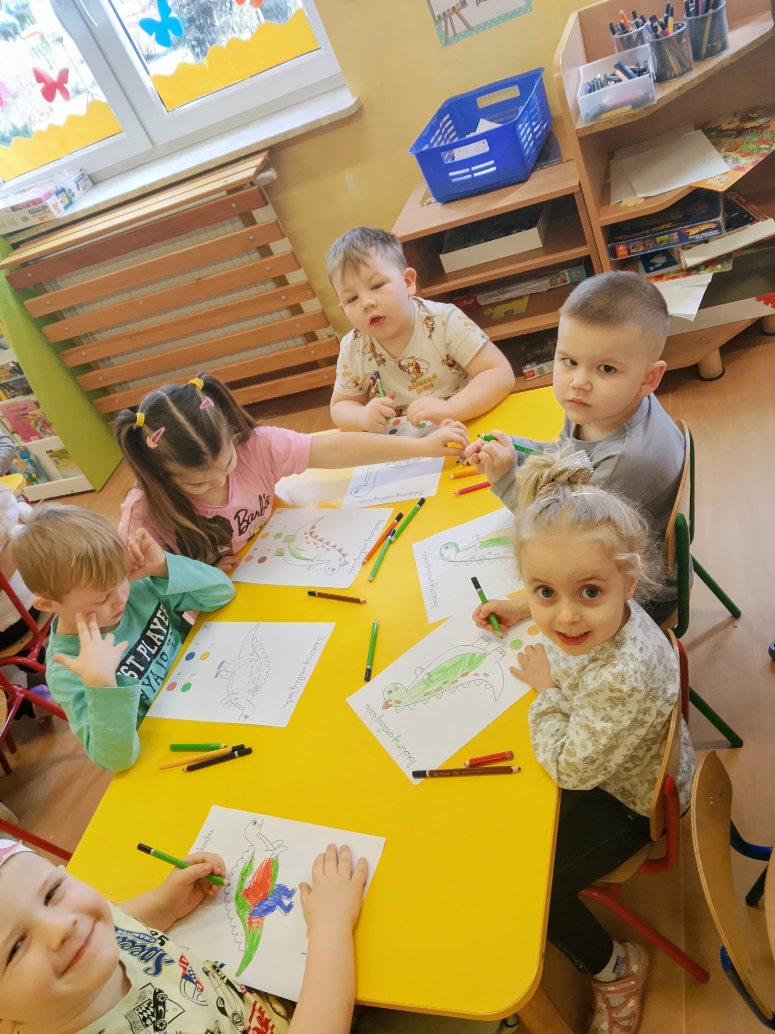 zorganizowano zajęcia, które wprowadziły dzieci w prehistoryczny świat i przybliżyły im życie tych wyjątkowych gadów. Przedszkolaki brały udział w wielu ciekawych aktywnościach.Ten wyjątkowy dzień upłynął w miłej i radosnej atmosferze.