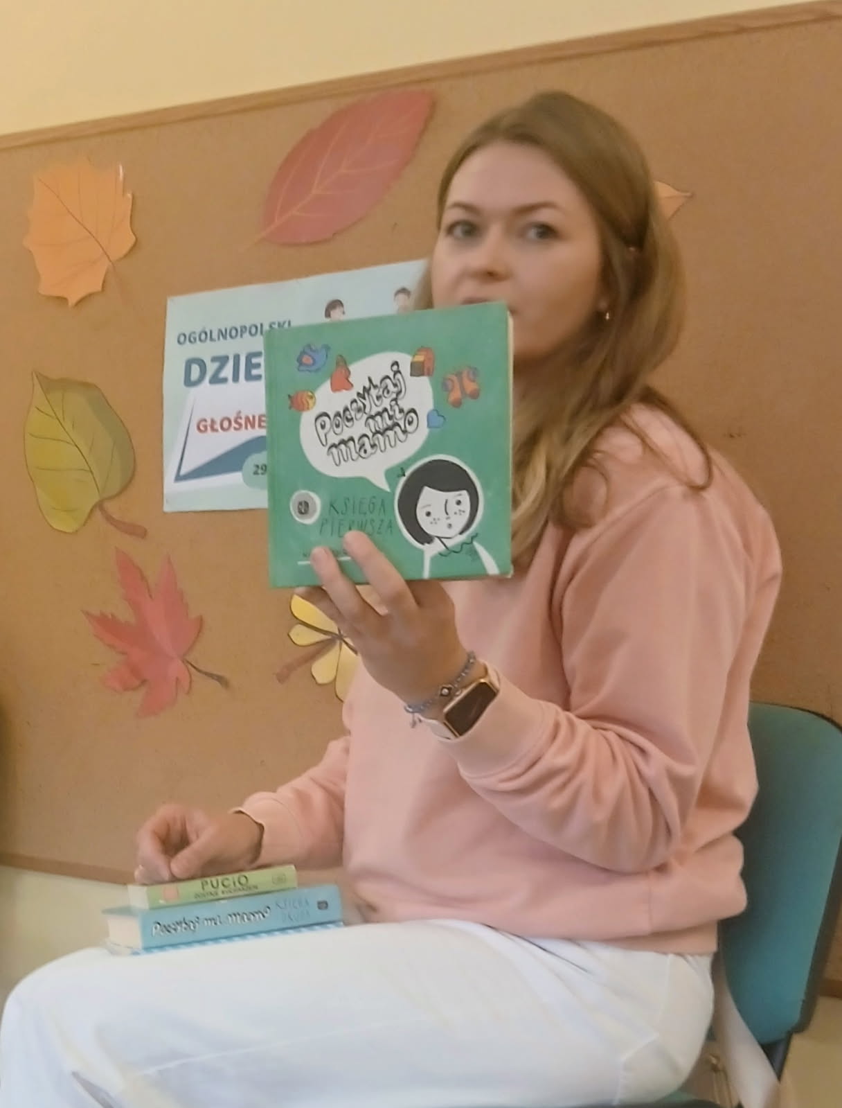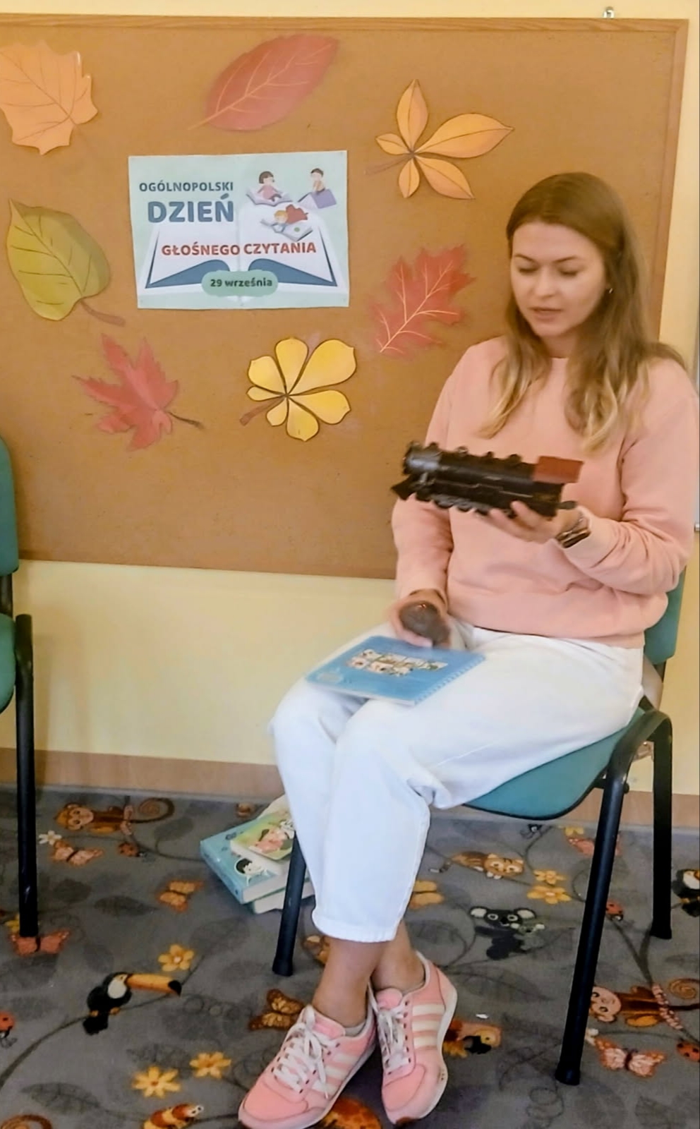 29 września obchodzimy Ogólnopolski Dzień Głośnego Czytania. To dzień, który stwarza kolejną okazję do wprowadzenia przedszkolaków w magiczny świat bajek, opowiadań i wierszy. Celem akcji jest promowanie głośnego czytania dzieciom, nabywanie przyjemności z czytania i słuchania. W ramach akcji "Książka dla Przedszkolaka" dzieci wykonały zakładki do książek. W tym dniu odwiedziły nas mama i siostra Tymona, które przygotowały ciekawe pozycję książkowe. Dzieci w skupieniu i zaciekawieniu słuchały wiersza i opowiadań oraz z wielką ochotą oglądały kolorowe ilustracje. Pani Milenie i Laurze serdecznie dziękujemy za poświęcony czas. Okazji do czytania dzieciom jest wiele i powinniśmy robić to jak najczęściej zarówno w domu, jak i w przedszkolu. Czytanie na głos stymuluje rozwój dzieci, wzbogaca ich słownictwo oraz rozwija wyobraźnię.