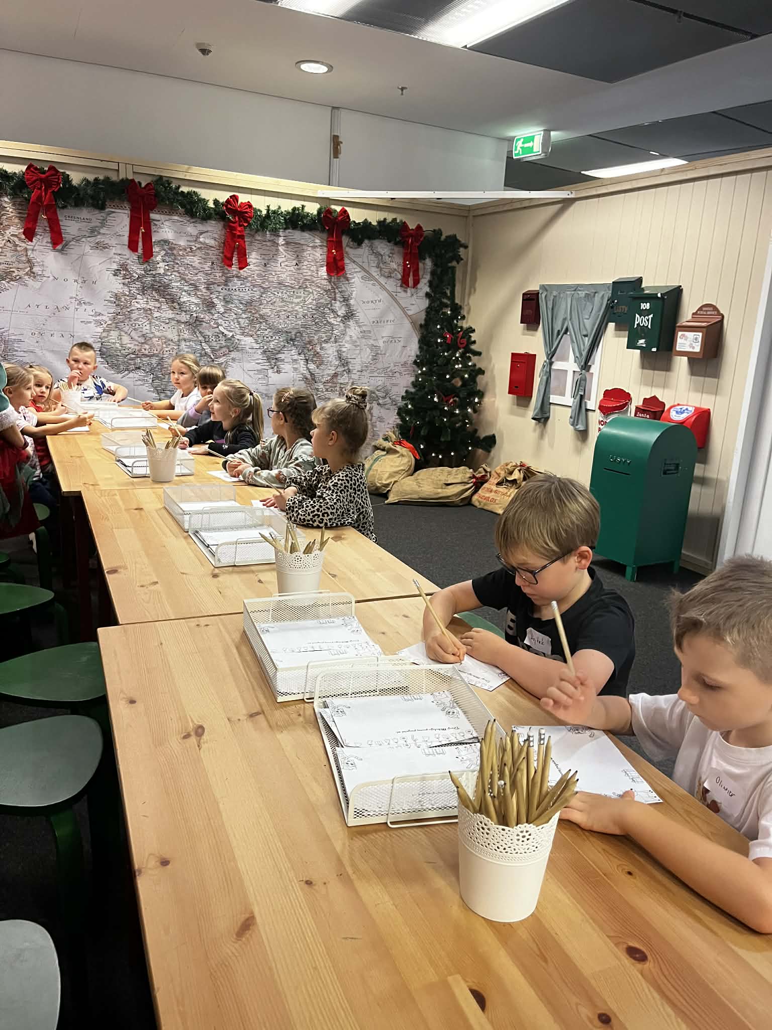 Dzieci z grupy Sówki wzięły udział w wyjątkowej wycieczce do Wielkiej Fabryki Elfów oraz Manufaktury Cukierków. Przedszkolaki przeniosły się w magiczny, świąteczny świat, gdzie mogły spotkać pomocników Świętego Mikołaja, rozwiązywać przygotowane przez nich zadania i pomagać w przygotowaniach do świąt. W czasie zwiedzania dzieci wykazały się ogromną ciekawością, aktywnie uczestniczyły w zabawach i z radością odkrywały kolejne etapy elfich prac. Drugą częścią wycieczki była wizyta w Manufakturze Cukierków, gdzie przedszkolaki obserwowały proces tworzenia słodkości – od podgrzewania masy karmelowej aż po formowanie kolorowych lizaków. Dzieci miały możliwość spróbować swoich sił w modelowaniu cukierków, co wywołało wiele entuzjazmu i śmiechu. Wycieczka dostarczyła dzieciom licznych wrażeń, rozwijała ich ciekawość, wyobraźnię oraz kreatywność. Była także doskonałą okazją do integracji grupy i wprowadzenia świątecznego nastroju. Dzieci wróciły do przedszkola pełne emocji i nowych doświadczeń.