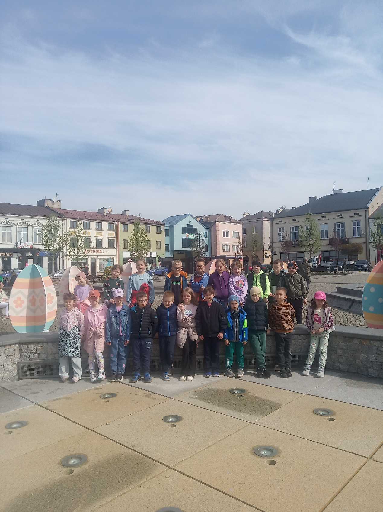 Z okazji zbliżających się Świąt Wielkanocnych nasze dzieci odwiedziły Rynek Miejski , gdzie czekała na nie świąteczna atmosfera pełna radości z uśmiechów i kolorowych ozdób które m. in. same przygotowywały.