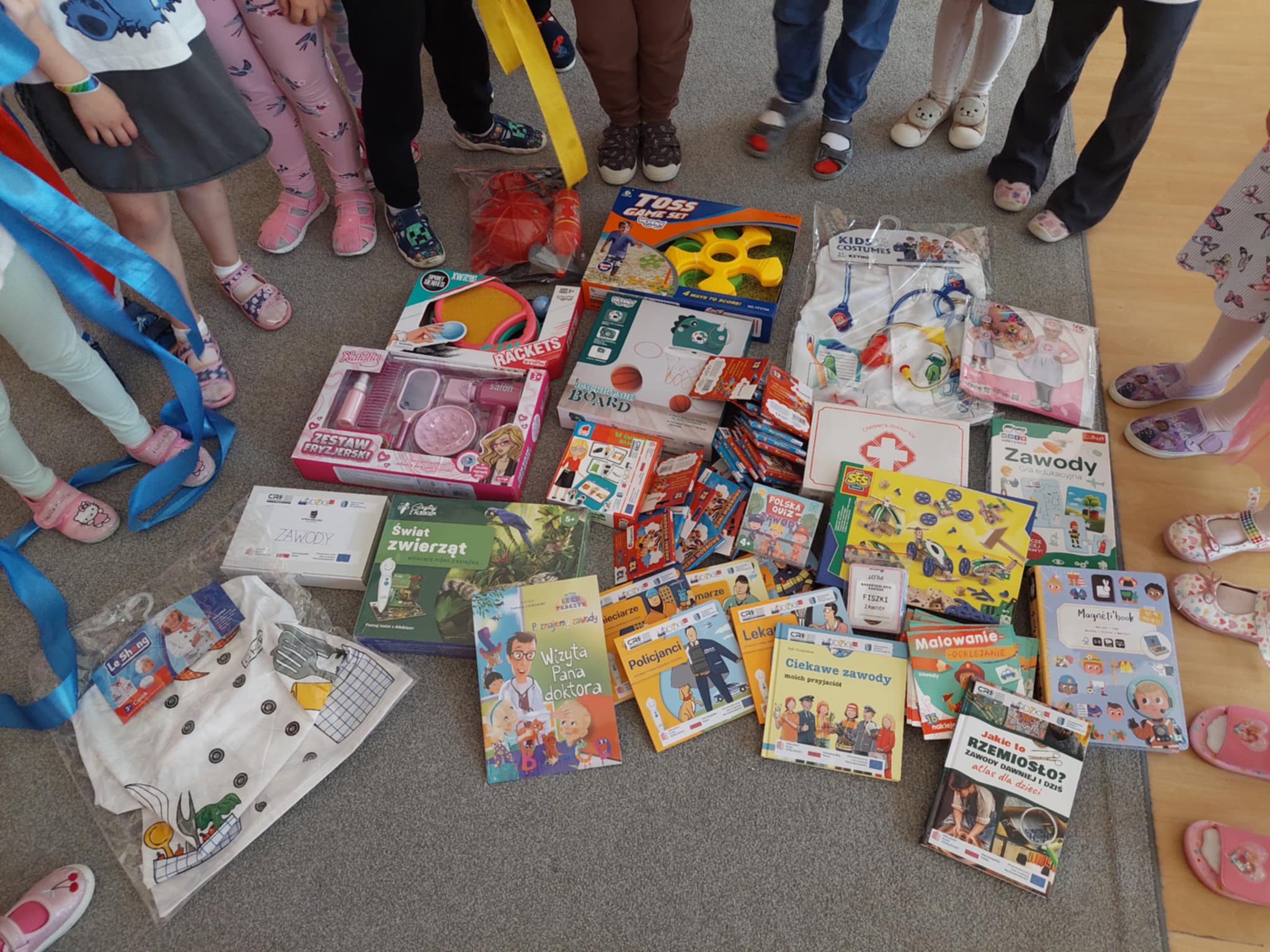 Przedszkolaki otrzymały również swój własny „Kuferek Małego Zawodowca” – zestaw pomocy dydaktycznych, który pozwala rozwijać zainteresowania, odgrywać role i jeszcze lepiej poznawać świat dorosłych.