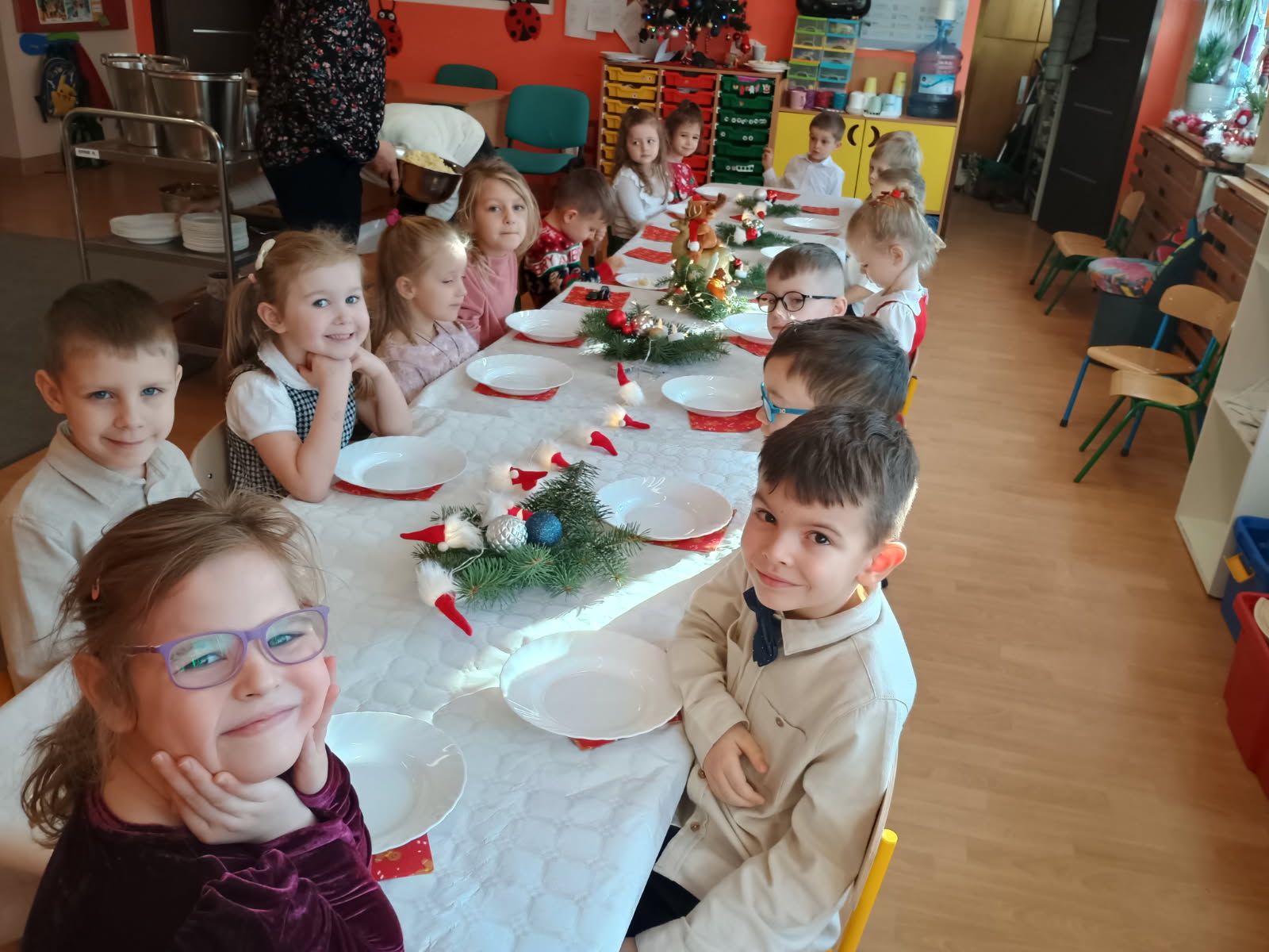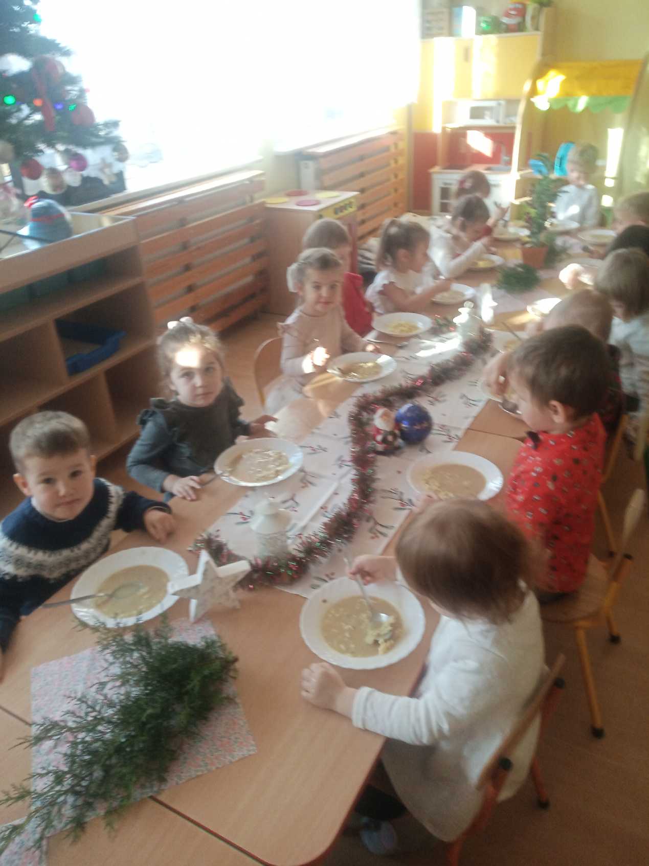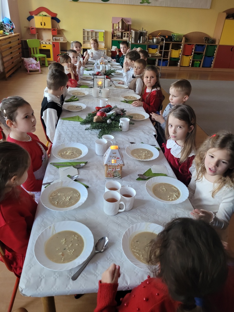 Dzisiejszy dzień w Przedszkolu nr 10 miał wyjątkowo uroczysty i świąteczny charakter. Po pięknych jasełkach dzieci wspólnie zasiadły do uroczystego obiadu.