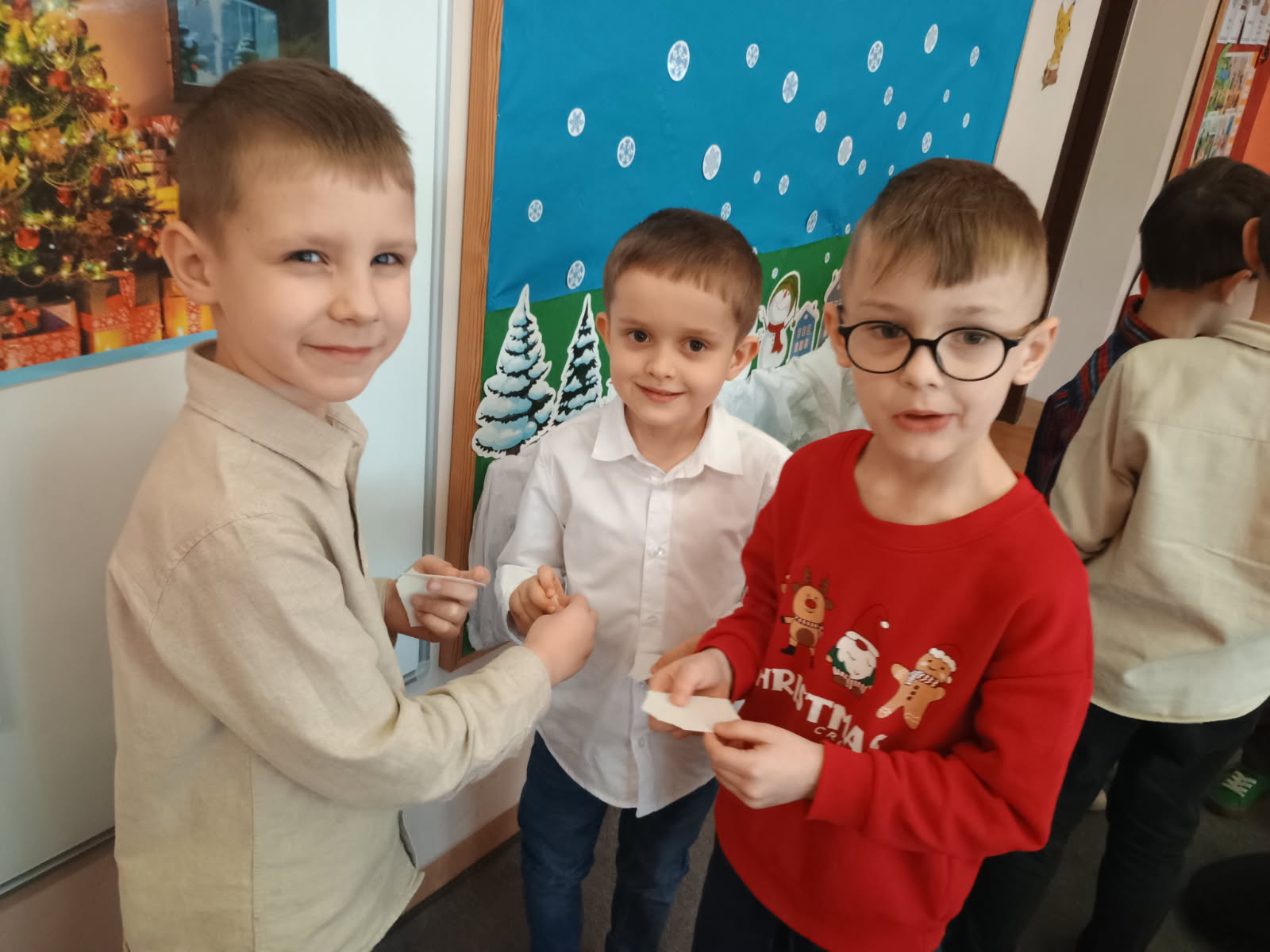 Zanim jednak rozpoczęły posiłek, nastąpił niezwykle wzruszający moment – dzieci dzieliły się ze sobą opłatkiem, składając sobie serdeczne życzenia, pełne ciepła, radości i uśmiechu . Był to czas bliskości, życzliwości i budowania wspólnoty.