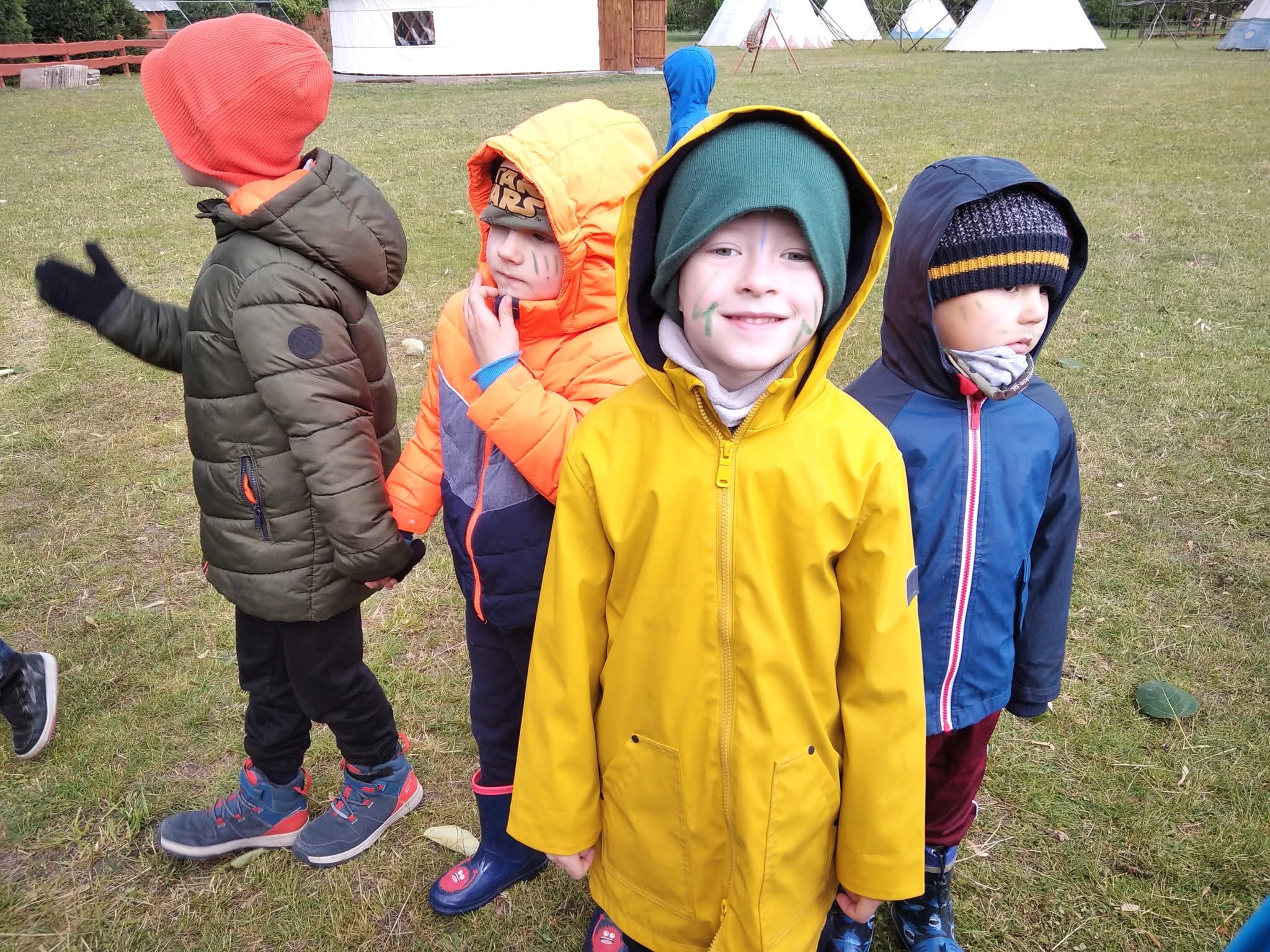 16 maja dzieci 5-letnie z grupy "Żabek" wyruszyły na wycieczkę do Indiańskiej Wioski "TATANKA" w Solcy Małej. Dzielni "Indianie" mimo chłodnej aury bawili się świetnie pod okiem animatorów. Z barwami indiańskimi na "bladych twarzach" zwiedzili skansen i muzeum Rdzennych Ludów Ameryki Północnej. Poznali niektóre ze zwyczajów indiańskich plemion. Posłuchali muzyki tanecznej i romantycznej, którą zagrał dla nich przewodnik. Obejrzeli stroje, zabawki, przedmioty codziennego użytku zgromadzone w tipi oraz jedynej w Polsce oryginalnej ziemiance. Razem zatańczyli indiański taniec, posłuchali legendy o pracowitych i leniwych Indianach i darze od ich bóstwa - soku z agawy. Spróbowali swoich sił w zawodach indiańskich. Wszystkie dzieci przeszły wspaniale tor przeszkód, strzelanie z łuku, rzut oszczepem, rzut do celu , którym były rogi bizona. Dla odważnych młodych "Indian" czekał też plac zabaw, zwierzęta w Mini-Zoo i kiełbaska z ogniska. Wycieczkę zapamiętają dzieci na pewno na długo dzięki miłym prowadzącym, którzy naprawdę ciekawie opowiadali o życiu Indian oraz odpowiadali na wszystkie dociekliwe pytania.