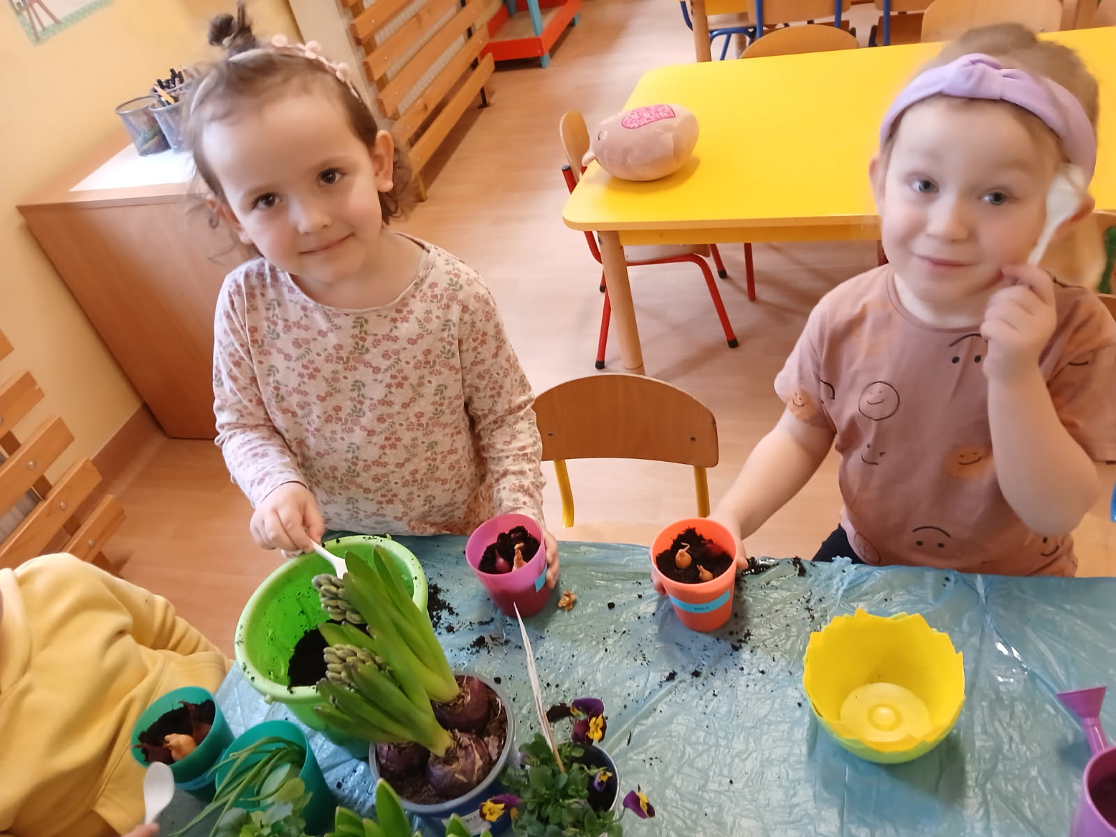 Nasze kochane maluszki z grupy Jabłuszka zamieniły się w małych ogrodników! Dzieci nauczyły się czego rośliny potrzebują do życia i jak o nie dbać. Stworzyły w sali zielony kącik, w którym zasiały: koperek, pietruszkę, owies, rzeżuchę oraz zasadziły: cebulki, hiacynty i bratki. Teraz z niecierpliwością czekamy, aż nasze roślinki urosną i wprowadzą jeszcze więcej wiosennej radości do naszej sali.