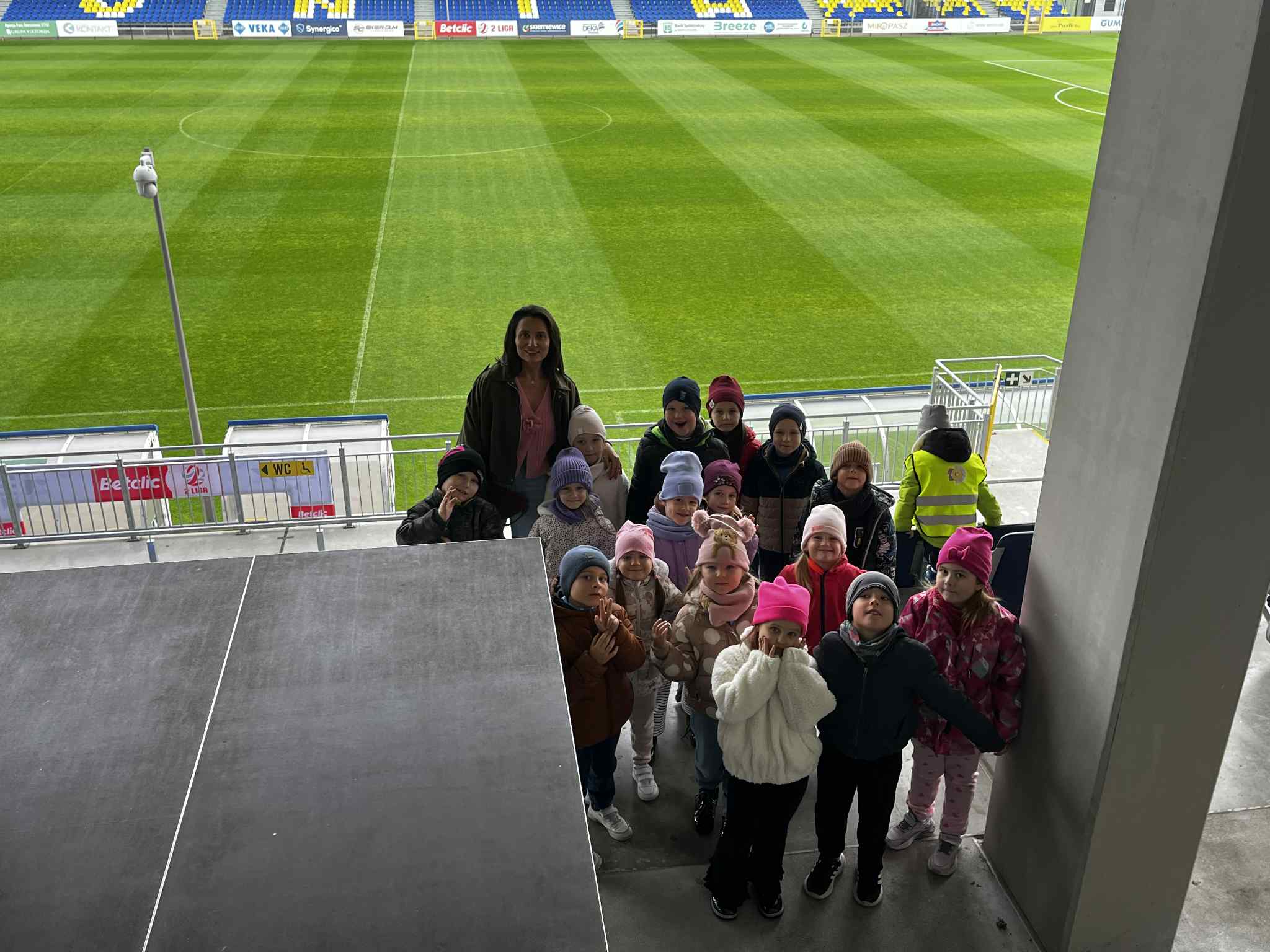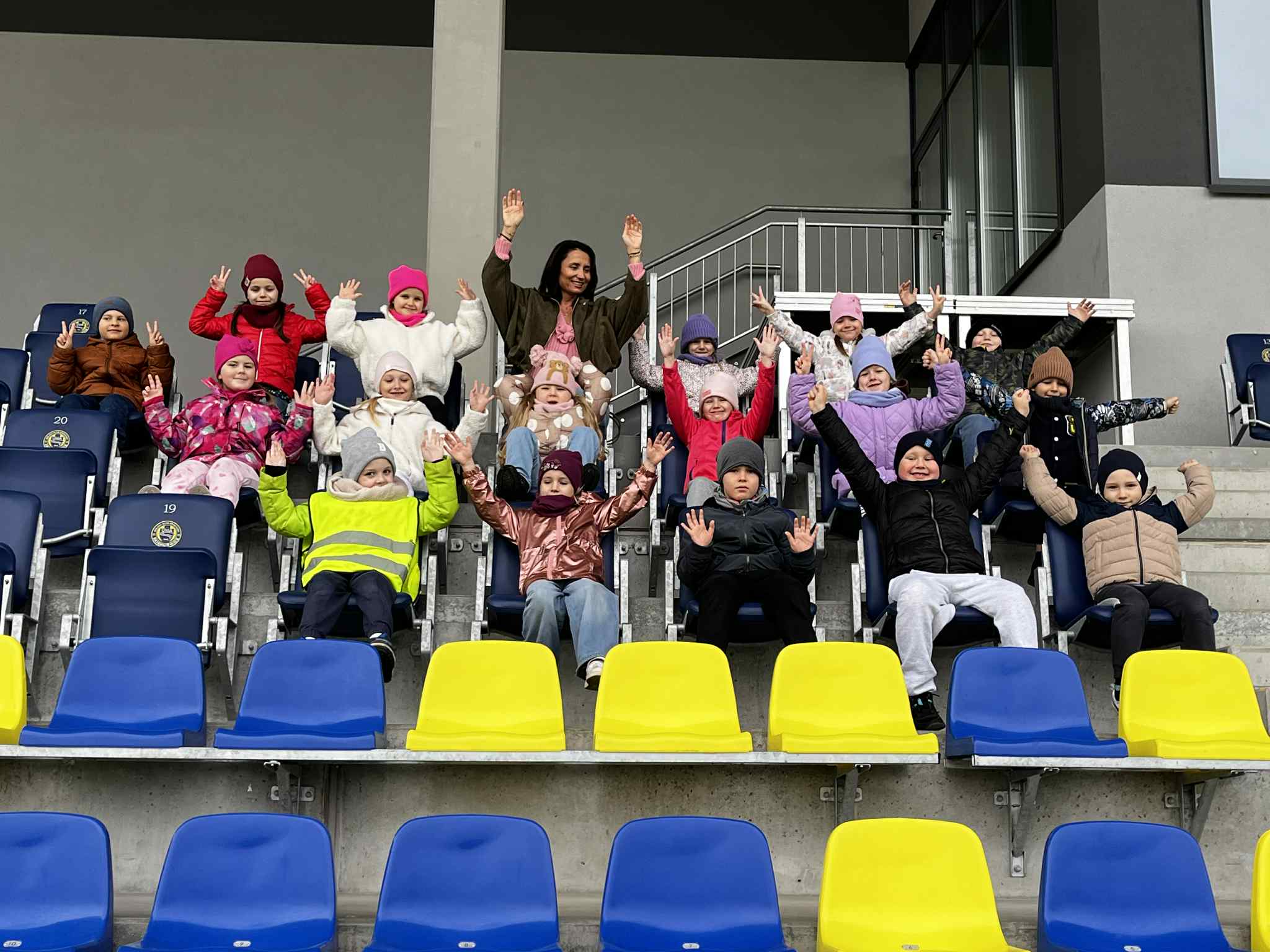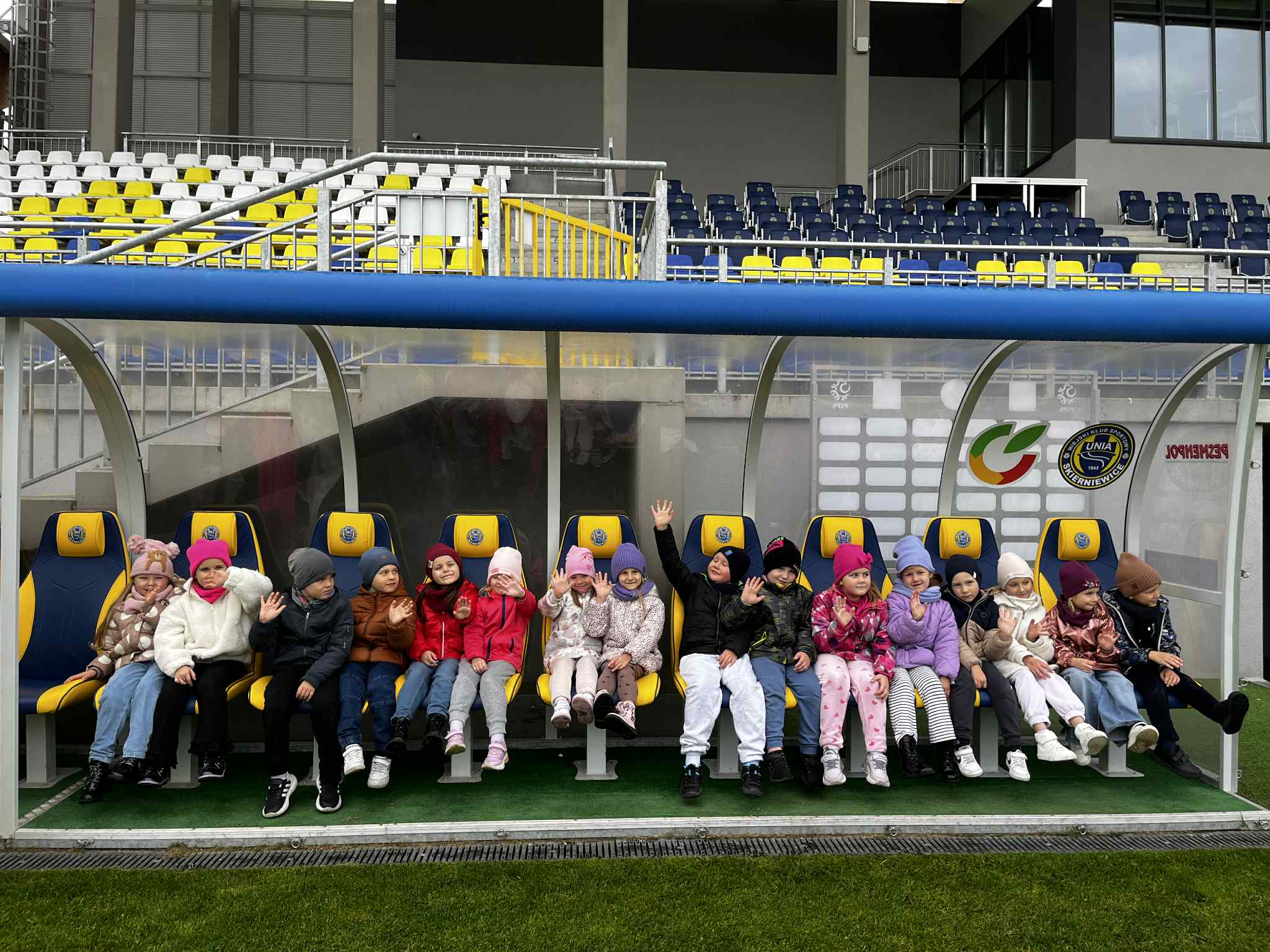 Przedszkolaki zajrzały do siłowni, szatni piłkarzy, wyszły na boisko, a na koniec prezes ośrodka zaprosił ich na taras widokowy